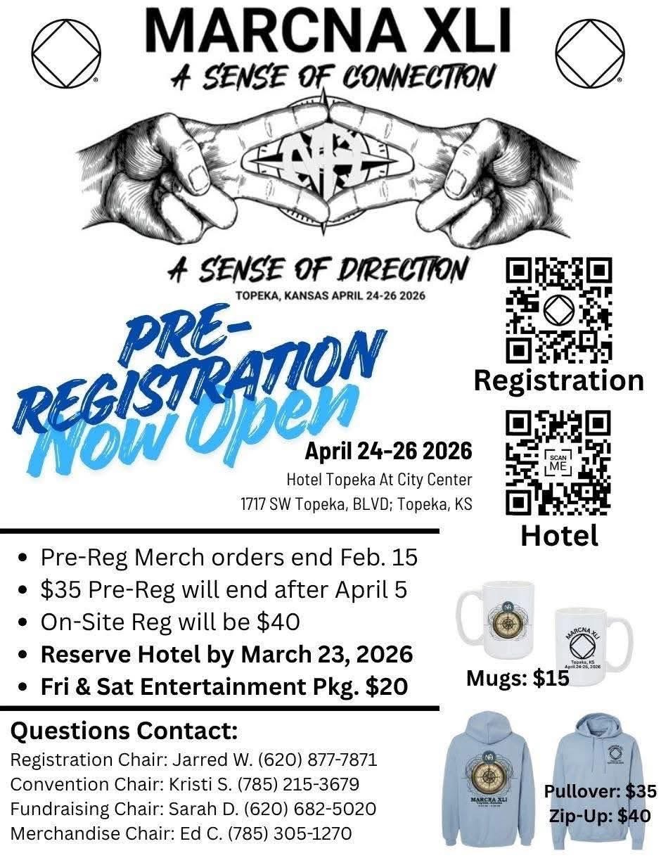 The Regional Service Committee (RSC) meets the third Saturday and Sunday in February, May, August, and November.  The RSC meetings are at 310 Swedonia St, Marquette, KS 67464.  Sub-committee meetings are held on Saturday, and the full RSC meets Sunday morning.
