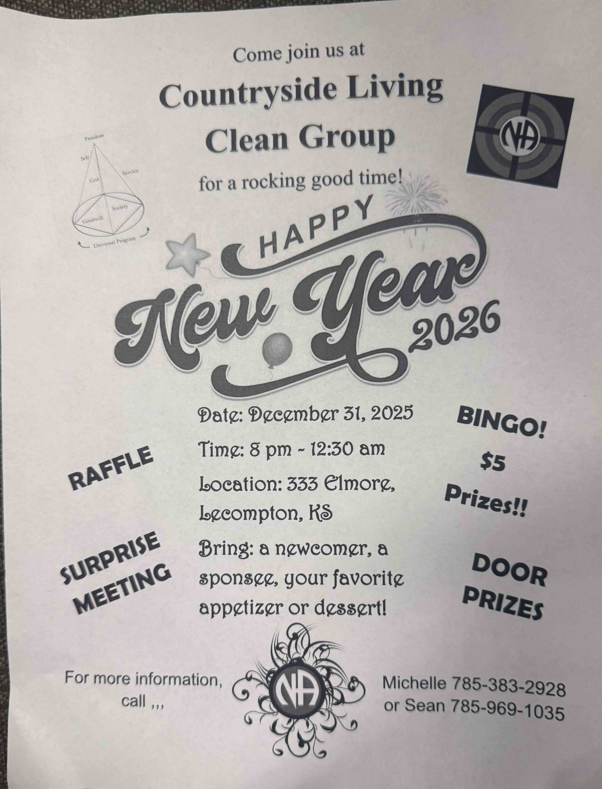 The Regional Service Committee (RSC) meets the third Saturday and Sunday in February, May, August, and November. The RSC meetings are at 310 Swedonia St, Marquette, KS 67464. Sub-committee meetings are held on Saturday, and the full RSC meets Sunday morning.