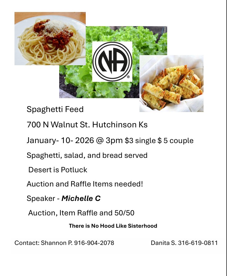 The Regional Service Committee (RSC) meets the third Saturday and Sunday in February, May, August, and November. The RSC meetings are at 310 Swedonia St, Marquette, KS 67464. Sub-committee meetings are held on Saturday, and the full RSC meets Sunday morning.